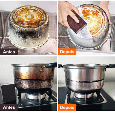 A nossa Esponja Mágica vai ajudar você a economizar, pois ao invés de desistir de suas panelas e utensílios enferrujados ou queimados e comprar tudo de novo, você poderá limpá-los e renová-los facilmente como mágica.