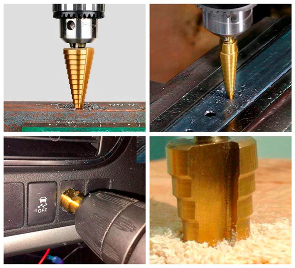 Esta broca permite que você faça furos em chapas de metal e aumente gradualmente o diâmetro do furo, sem a necessidade de trocar a broca, o que melhora a produtividade no trabalho!